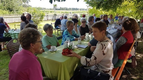 Unter schattigen Bäumen ließ es sich herrlich plaudern und Erika vom Gartencafe verwöhnte die Damen mit selbstgebackenen Kuchen und Kaffee.
